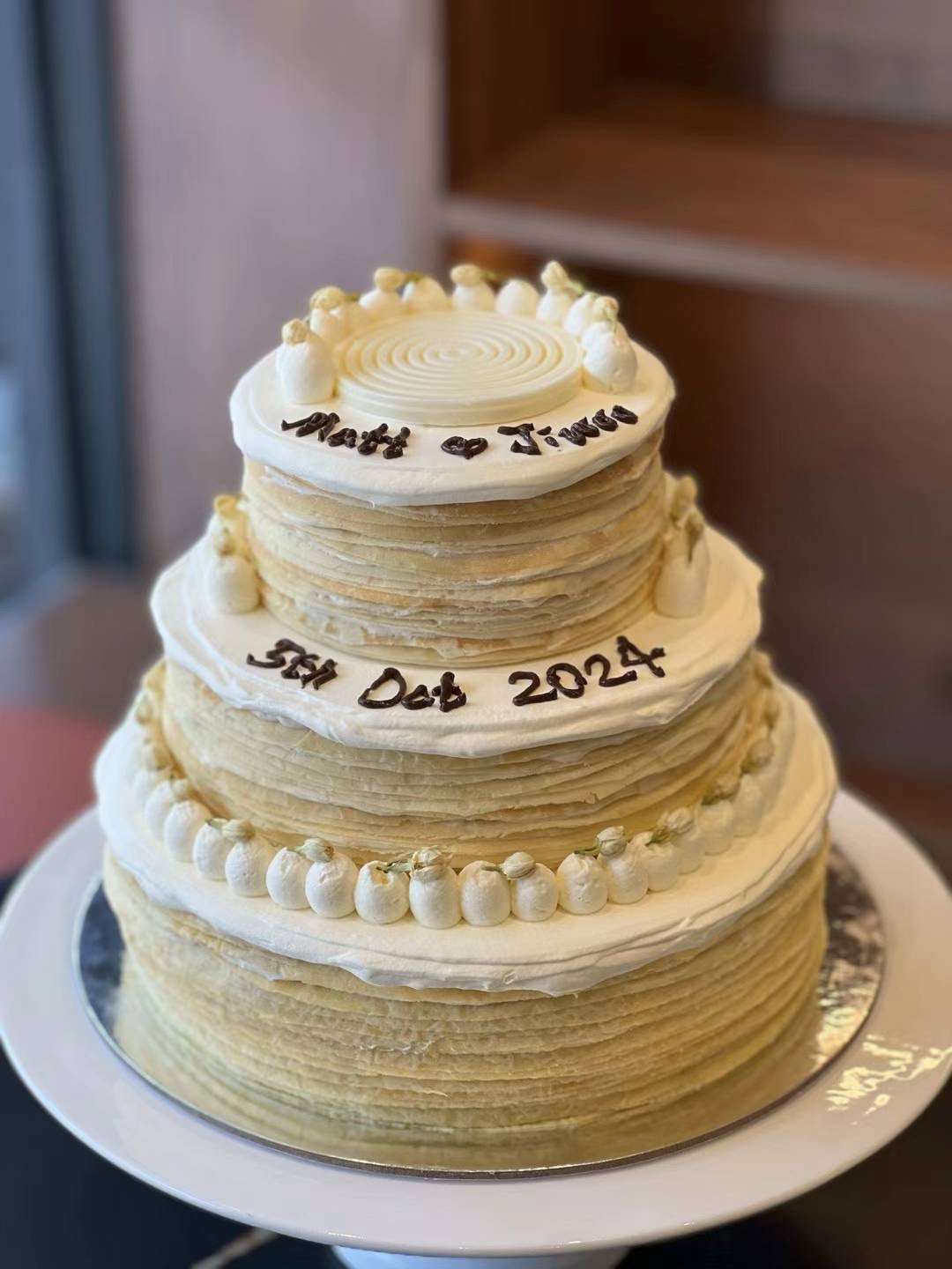 Experience the pinnacle of individuality and allure with our Emotional Oranges Wedding Crepes Cake—an unrivaled masterpiece designed to captivate. Delight in its sumptuous layers, expertly arranged in diverse tiers and dimensions, culminating in a stunning spectacle that commands attention. With undeniable grace and impeccable aesthetics, our Vanilla Wedding Mille Crepes are poised to elevate your celebration to unprecedented levels of sophistication.